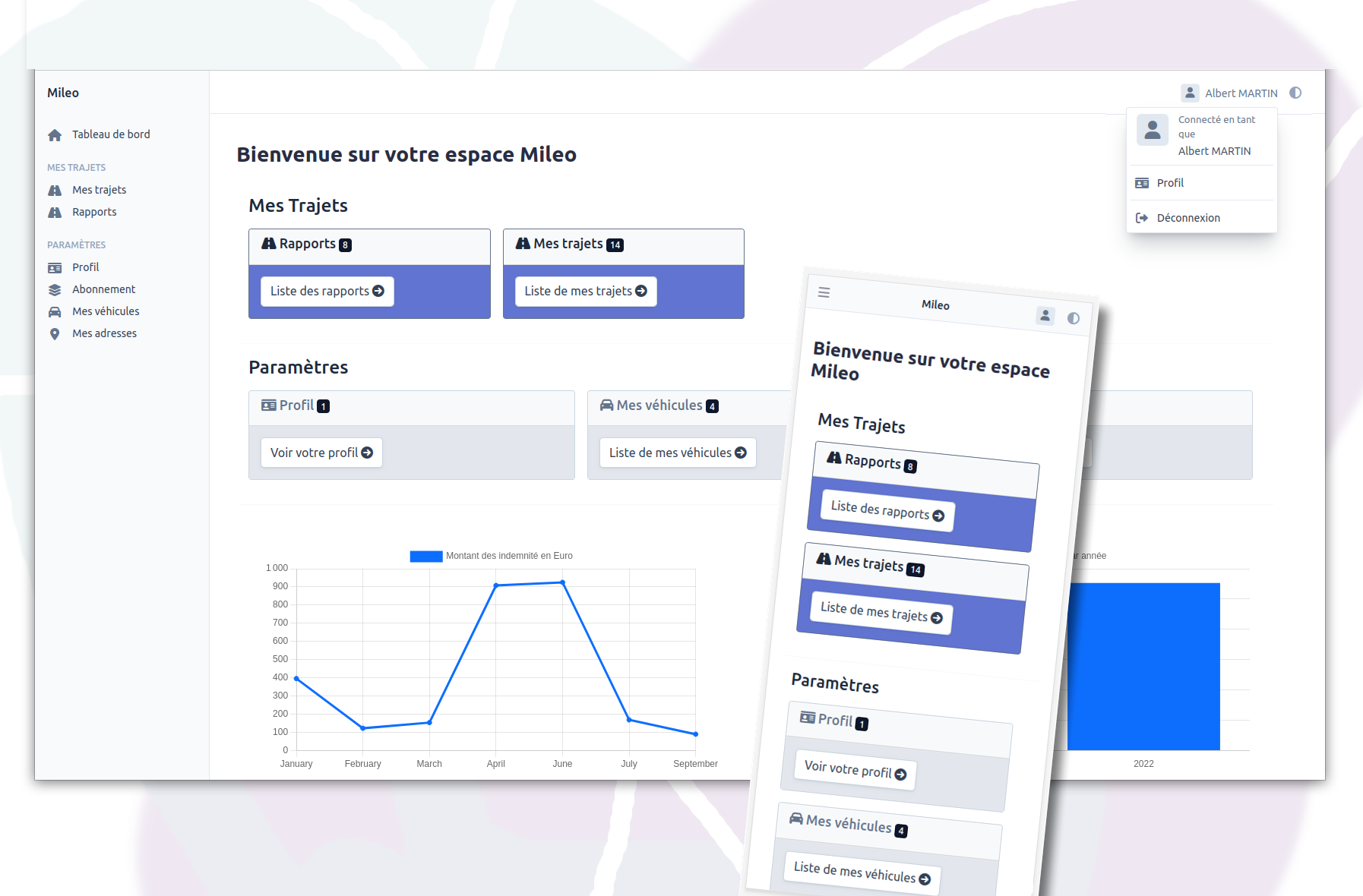 • Visualisation des vos statistiques d'indemnités kilométriques